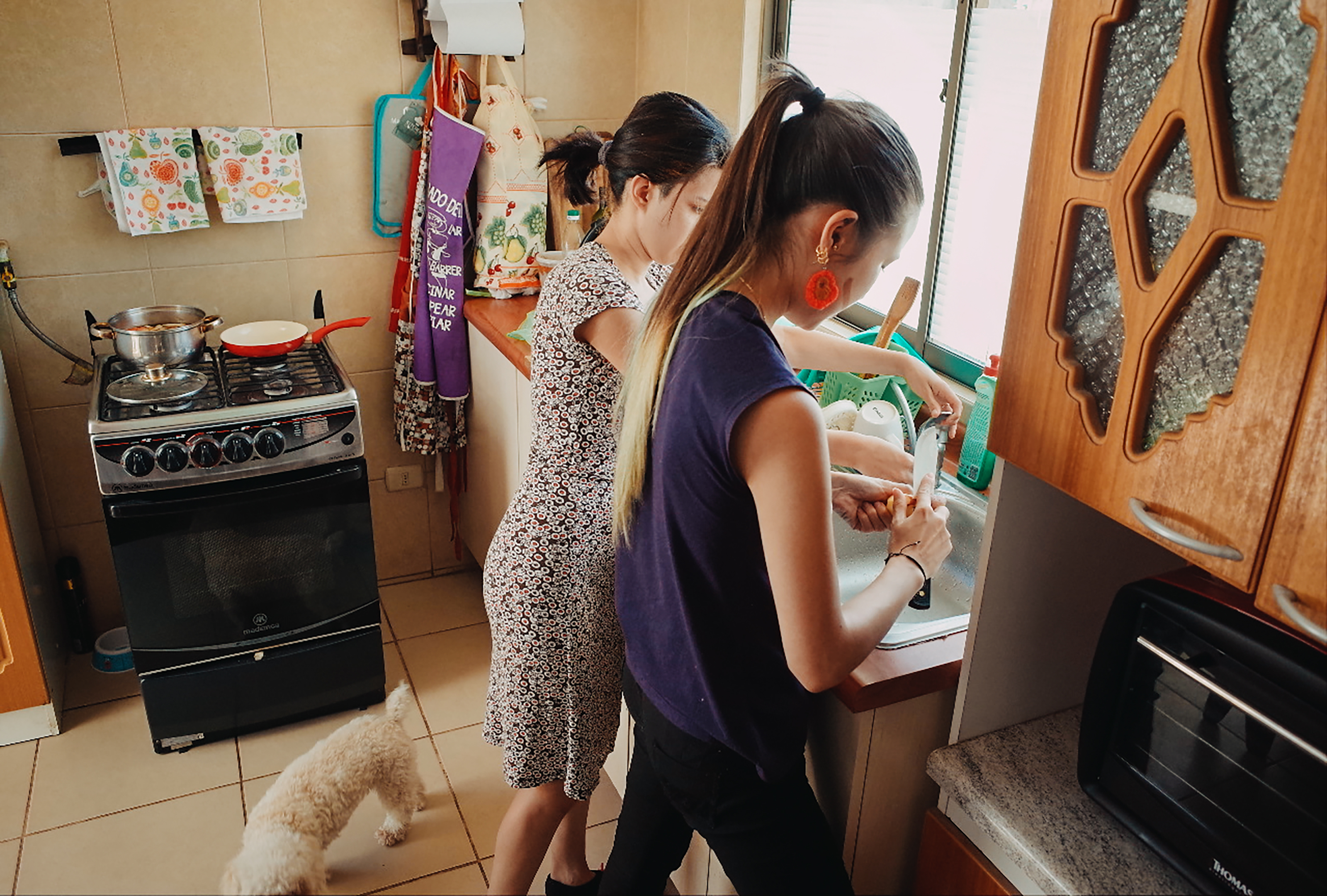 Maria and the guy’s elder daughter help with the cooking.